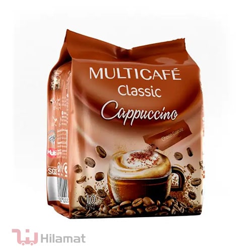 کاپوچینو یک یکی از نوشیدنی های محبوب دنیا برپایه قهوه است که بدلیل ترکیب دلچسب قهوه و با شیر طعم مطبوع ملایم و دلچسبی دارد. کاپوچینو مولتی کافه با تولید نمونه فوری و سریع آن توانسته این طعم مطبوع را بدون هزینه زیاد و زحمت زیاد در یک ساشه برای شما تولید کند. محصول کاپوچینو کلاسیک مولتی کافه با ترکیب قهوه فوری مرغوب، شکر و خامه غیر لبنی تجربه ای مناسب ذائقه شما را ایجاد کرده است. اگر به دنبال یک نوشیدنی سبک تر و نرم تر و در عین حال انرژی بخش مانند قهوه هستید کاپوچینوی مولتی کافه می تواند این احساس دلچسب را برایتان ایجاد کند.
